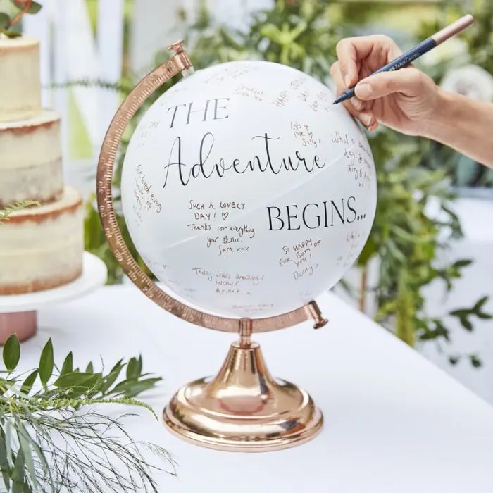 Schließlich geht es bei der Auswahl des Gästebuchs vor allem darum, dass es euch gefällt! Wichtig für die Auswahl eures Gästebuchs ist auch das Motto eurer Hochzeit. Habt ihr euch für ein bestimmtes Motto entschieden? Dann trägt ein passendes Gästebuch in jedem Fall dazu bei, dass die Hochzeit selbst noch „runder“ wird. Hier solltet ihr in jedem Fall genau hinschauen. Wie schön wenn man das passende Gästebuch zu seinem Hochzeitsmotto hat. Zum Beispiel ein Globus zum Thema Weltreise oder Reisen.